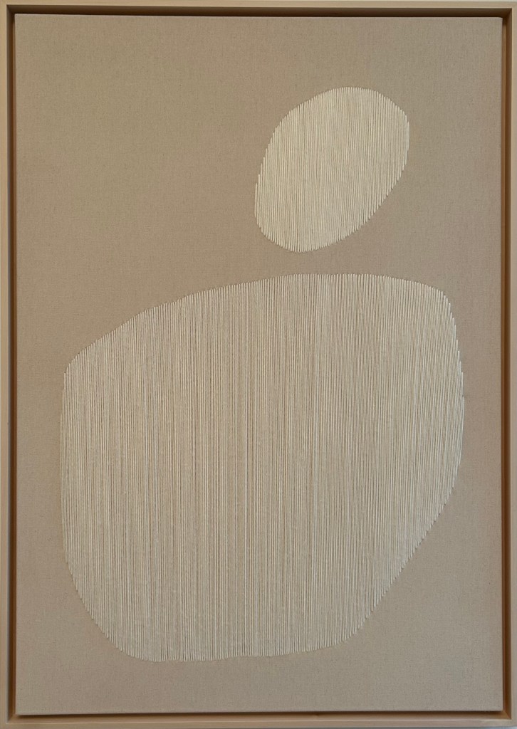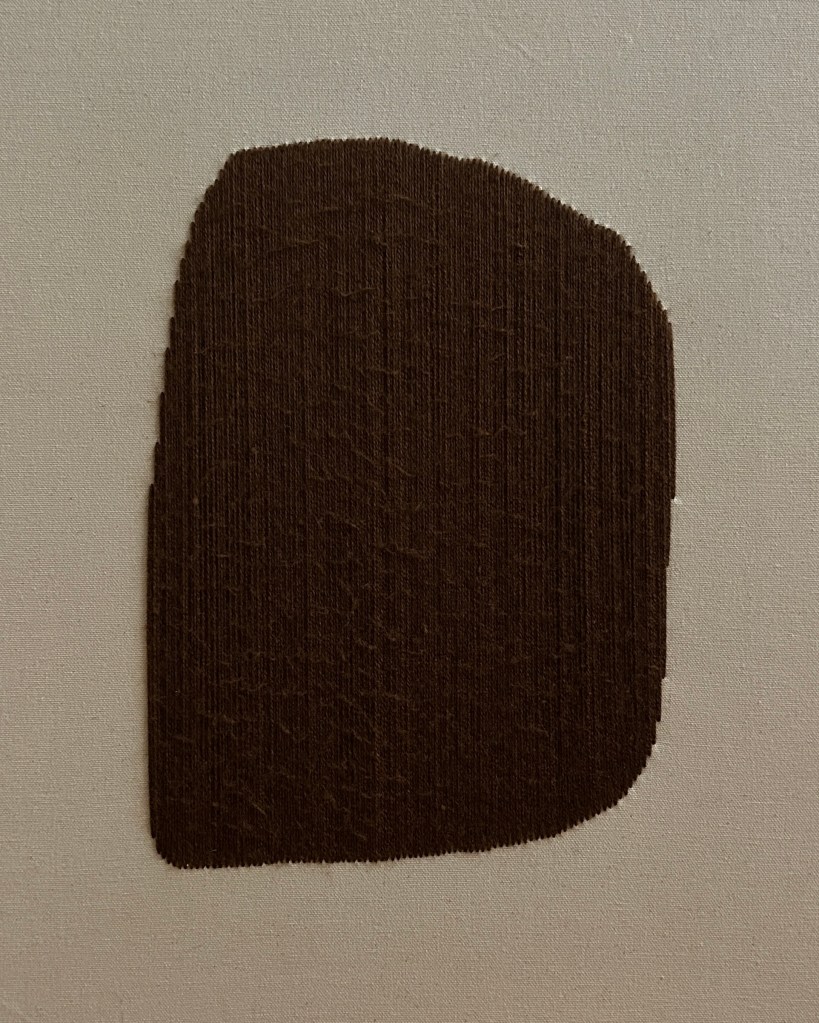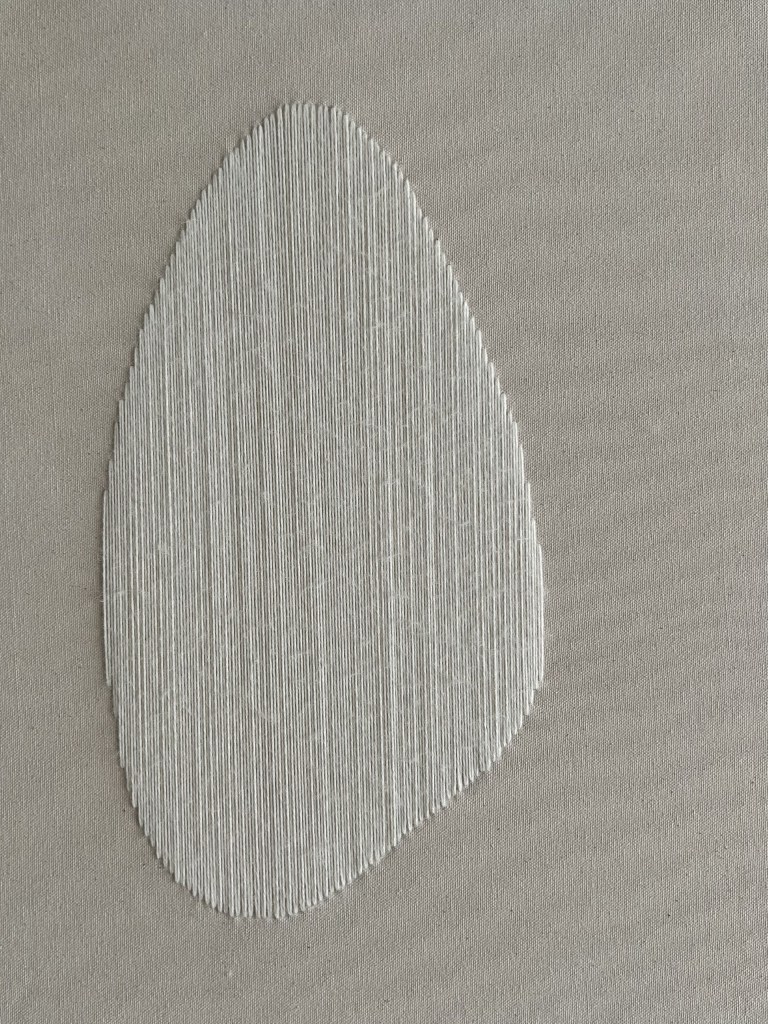 taupe wool thread on raw canvas