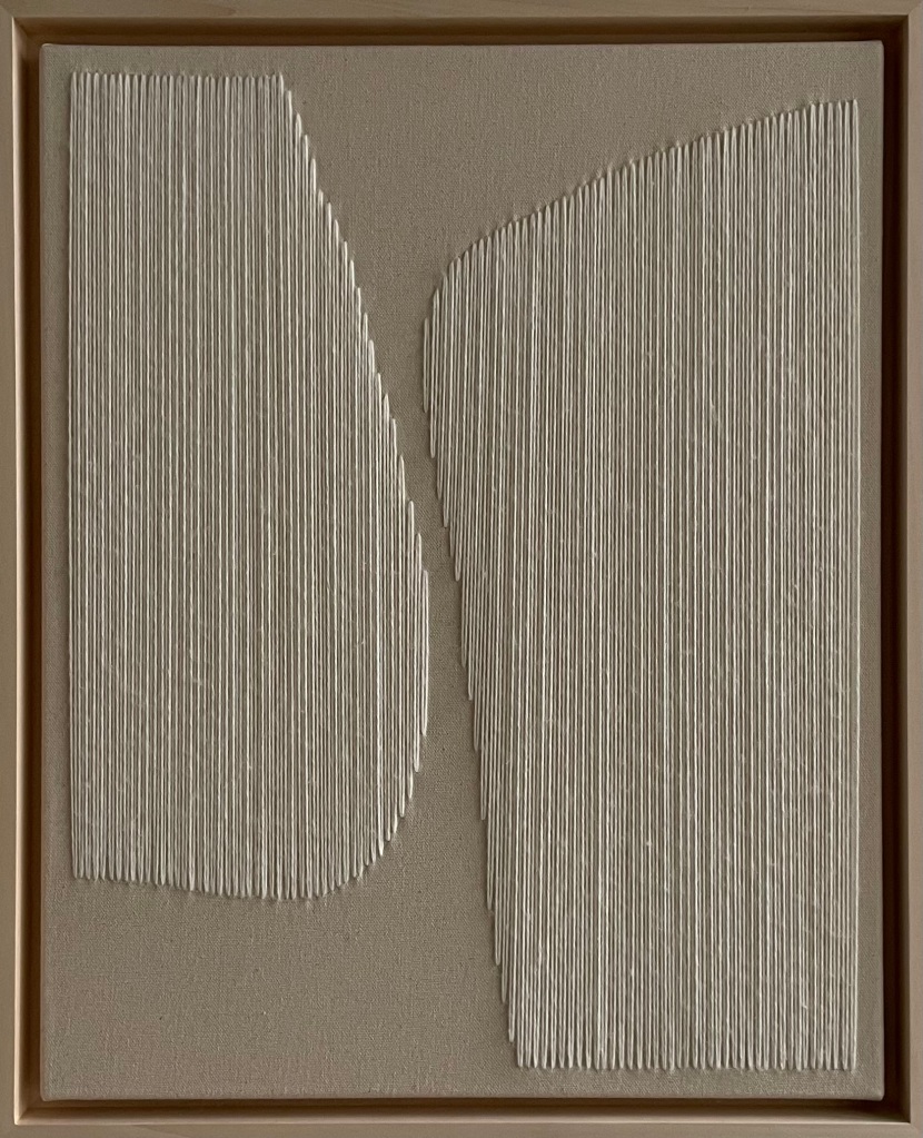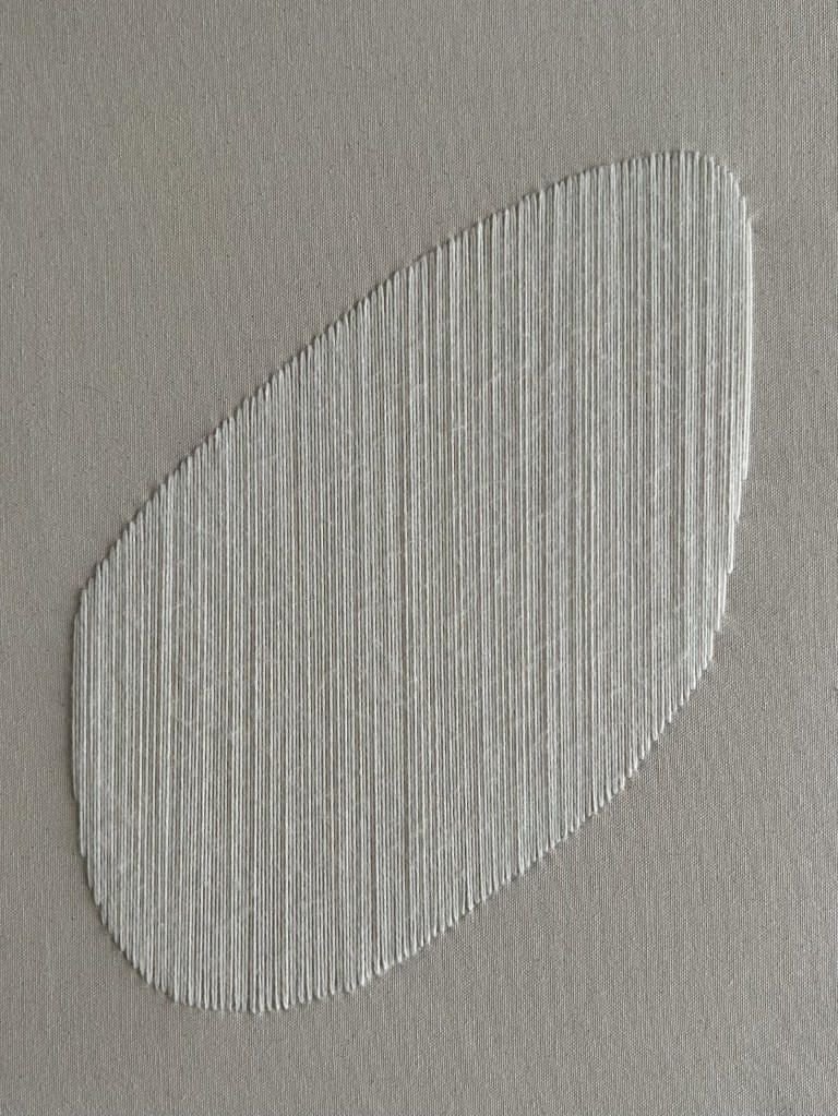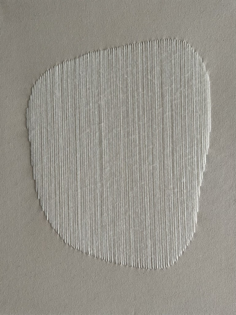 wool thread on raw canvas